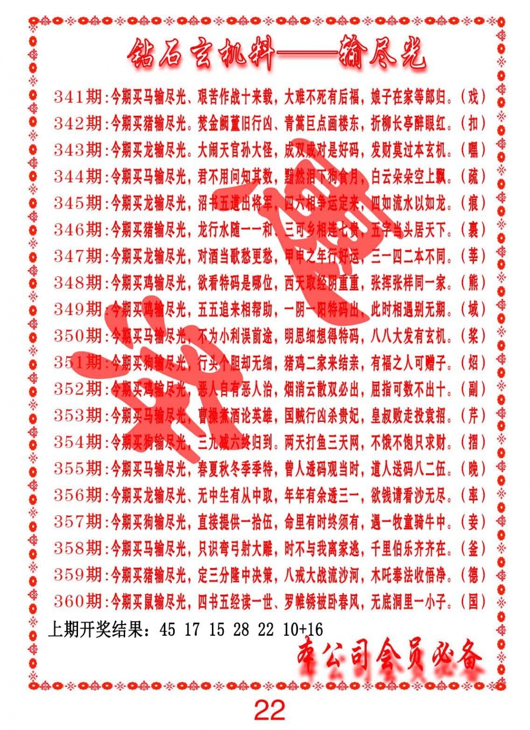 钻石玄机诗-输光料
